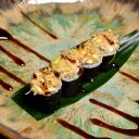 8 unidades de sushi envolto em alga recheado de arroz e salmão coberto com cream cheese e crispy de alho poró.